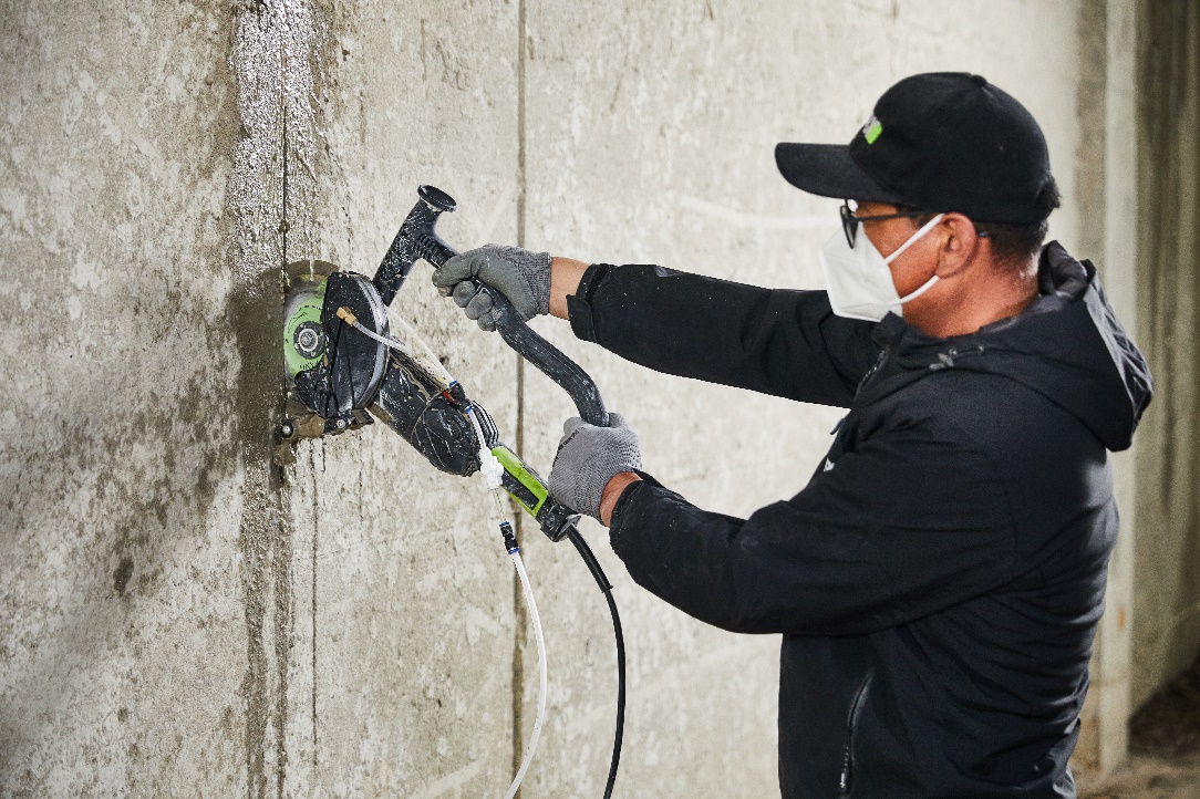 水電安裝工程,在墻體中切割槽道,用于布設(shè)電線、水管等。